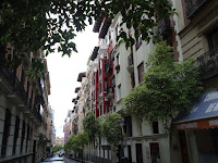 I wandered back through the spitting rain to the hostel, hoping they would let me in at 2. Finally, at 2:30, the girls cleaning the room radioed to the desk that there were finished, and I could go up. Even though I was really really really tired, I decided that I should take a shower instead of waiting until the morning and needing to fight the other 3 girls for it. As I was gathering my things, the girl who was sharing my bunk walked in. We introduced ourselves - her name is Rebecca, she’s from Austin, and she’s spending the next 4 months in Spain to learn Spanish. She also just got back from teaching in Thailand, so we have a lot in common. Rebecca is a couch surfer too, and she invited me to go out to dinner with her and some local CSers. I asked her to wake me at 8 (dinner is super-late in Spain), and went off to shower and then to sleep.